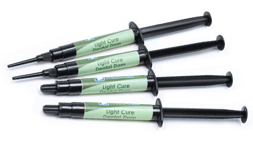 A light cure, low viscosity pigmented resin for use to cover and protect adjacent teeth of soft tissue. Especially useful for isolating tissue adjacent to any tooth during bleaching procedures. It is easily applied and removed in one piece. Low heat reaction.